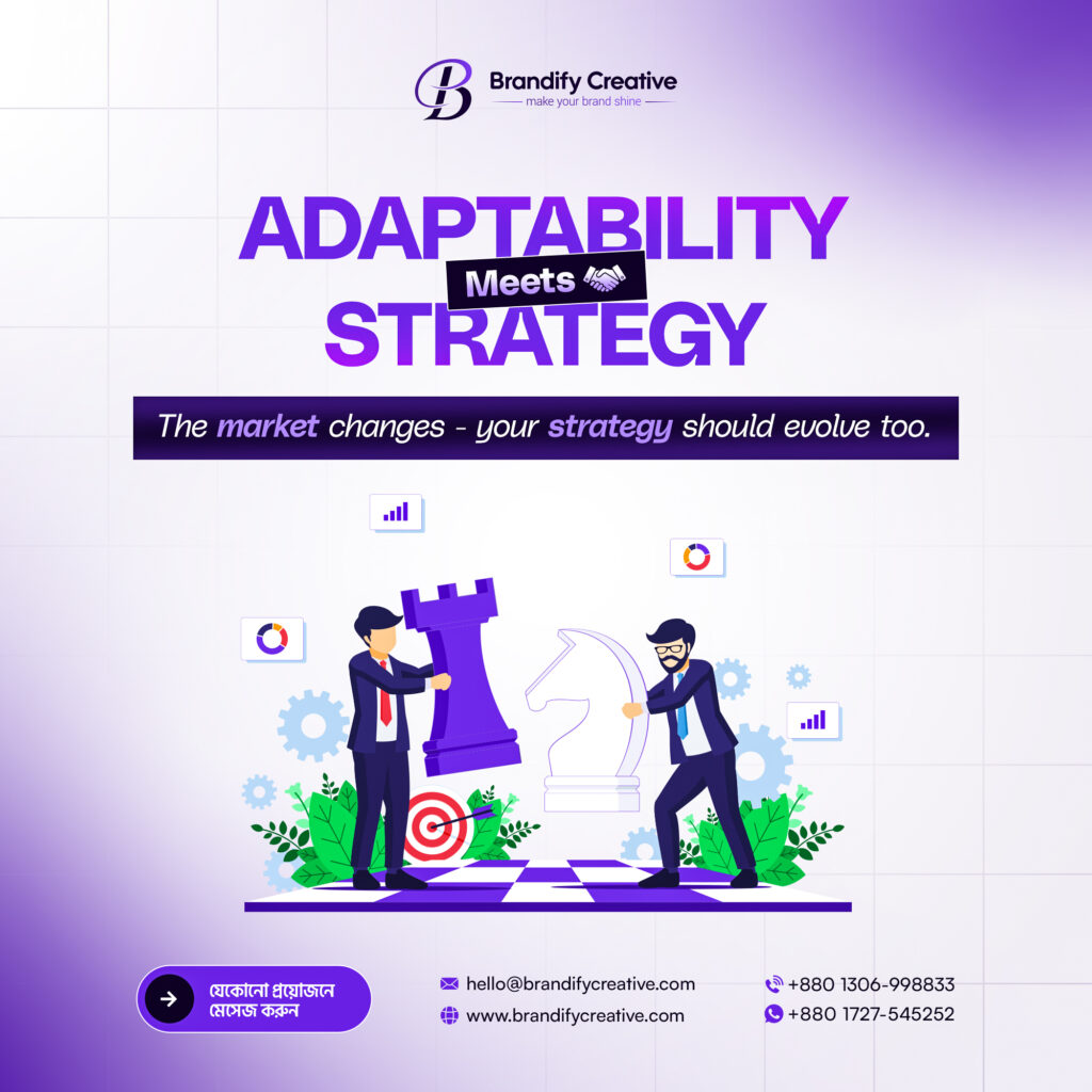 In the fast-paced world of digital marketing, only those brands win that adapt smartly.At Brandify Creative, we combine creative precision with adaptable strategies that help your business stay ahead of the curve. Creative Precision Smart & Adaptable Strategies Growth-Driven BrandingLet’s transform your brand into a true game-changer and lead every move with confidence. Phone: +880 1306-998822 WhatsApp: +880 1306-998833 Email: hello@brandifycreative.com Website: brandifycreative.com